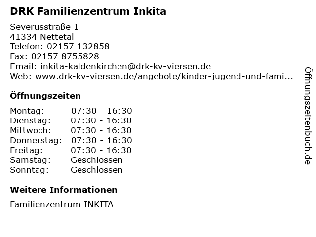 | Öffnungszeiten DRK Familienzentrum Inkita in Nettetal anzeigen | |
