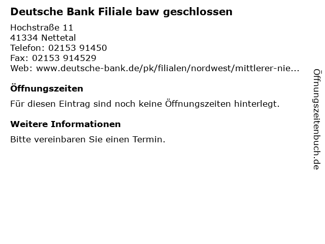 | Deutsche Bank Filiale baw geschlossen anrufen | |