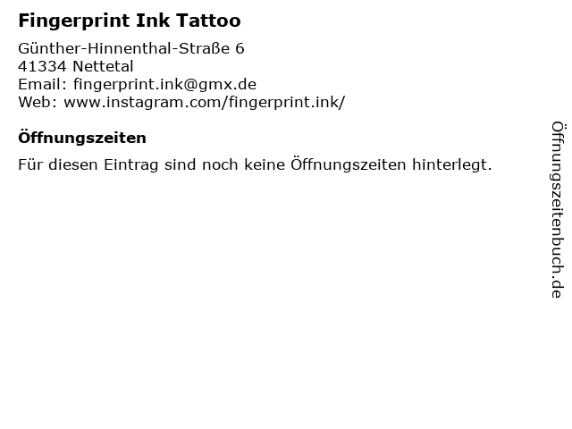 | Öffnungszeiten Fingerprint Ink Tattoo in Nettetal anzeigen | |