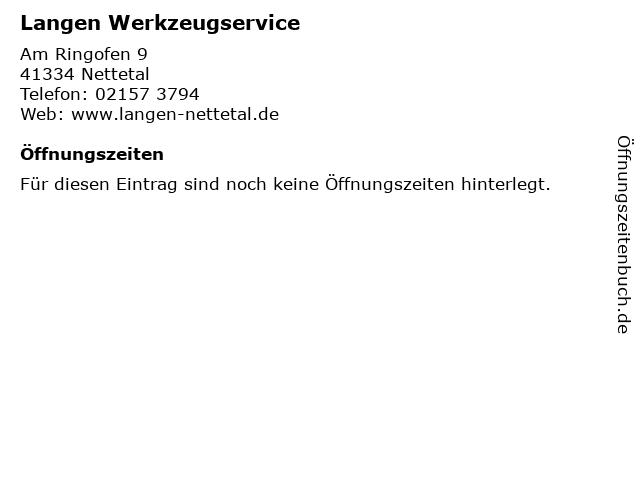 | Öffnungszeiten Langen Werkzeugservice in Nettetal anzeigen | |