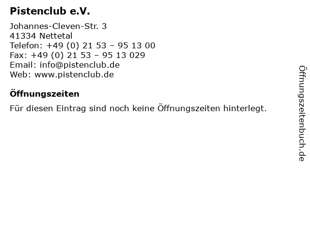 | Öffnungszeiten Pistenclub e.V. in Nettetal anzeigen | |