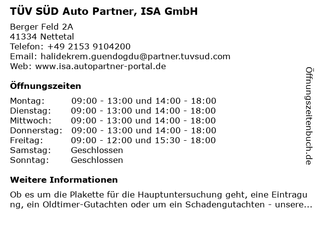 Branchen & Suchbegriffe zu TÜV SÜD Auto Partner, ISA GmbH:abgasuntersuchung, auto, hauptuntersuchung, isa, kfz, oldtimergutachten, partner, süd, tüv |