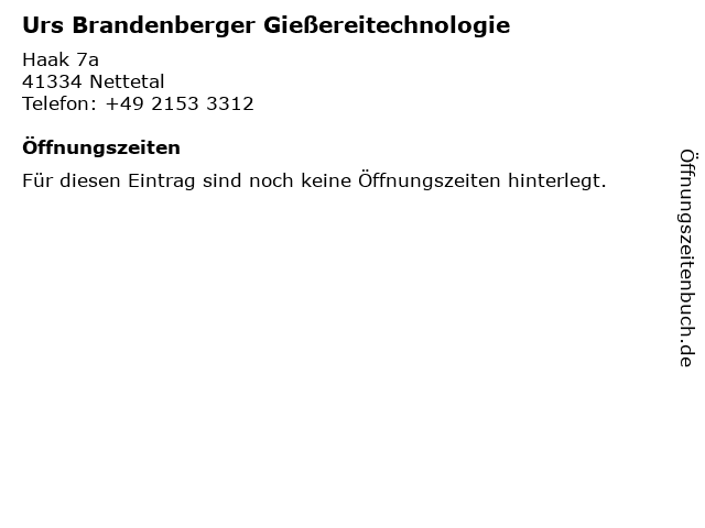 | Urs Brandenberger Gießereitechnologie anrufen | |