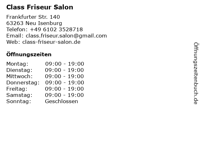 Öffnungszeiten Class Friseur Salon in Neu Isenburg anzeigen | |