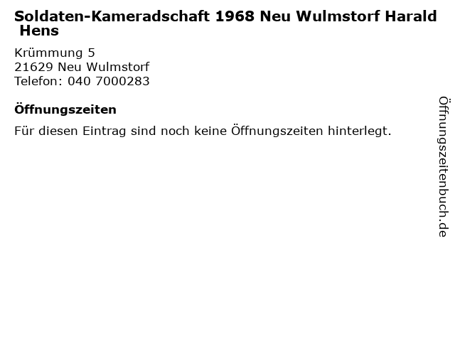 | Soldaten-Kameradschaft 1968 Neu Wulmstorf Harald Hens anrufen | |