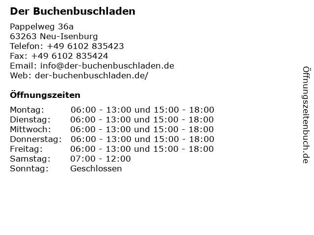 Öffnungszeiten Der Buchenbuschladen in Neu-Isenburg anzeigen