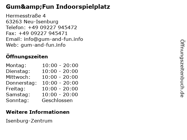 Gum&Fun Indoorspielplatz in Neu-Isenburg | Telefonnummer, Öffnungszeiten und Adresse