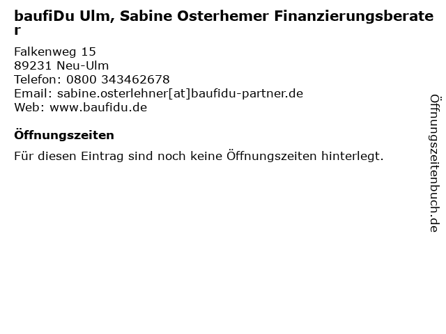 Branchen & Suchbegriffe zu baufiDu Ulm, Sabine Osterhemer Finanzierungsberater:baufidu, finanzierungsberater, osterhemer, sabine |