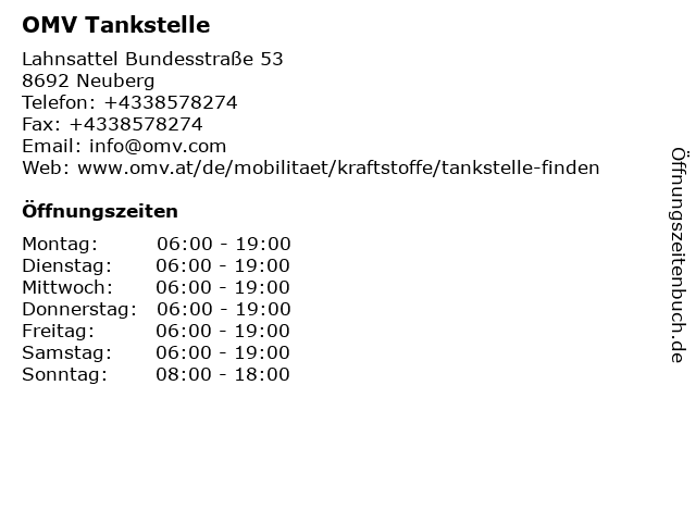 | Öffnungszeiten OMV Tankstelle in Neuberg anzeigen | |