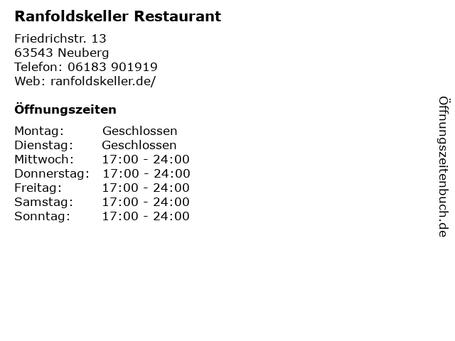 | Öffnungszeiten Ranfoldskeller Restaurant in Neuberg anzeigen | |