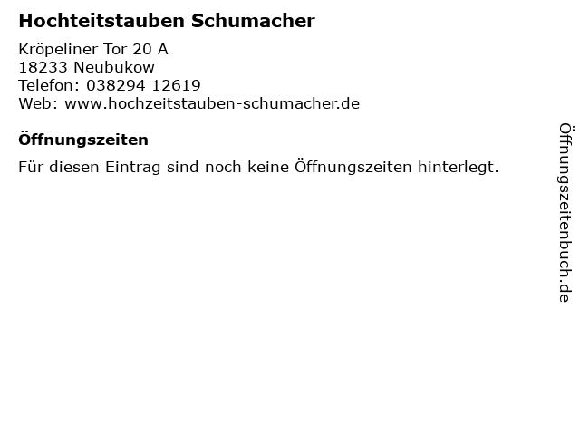 | Öffnungszeiten Hochteitstauben Schumacher in Neubukow anzeigen | |