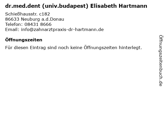| dr.med.dent (univ.budapest) Elisabeth Hartmann anrufen | |