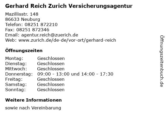 Branchen & Suchbegriffe zu Gerhard Reich Zurich Versicherungsagentur:agentur, agenzia, ansprechpartner, assicurazione, assurance, austria, berater, beratung, büro, dienstleistung, finanzen, generalagentur, gerhard, reich, service, versicherungen, versicherungsagentur, werner, zierer, zurich |