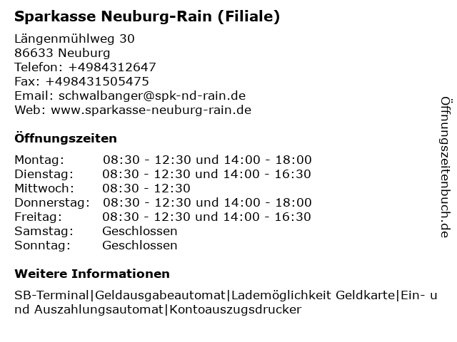 Sparkasse Altbayern (Filiale) in Neuburg: Telefonnummer, Öffnungszeiten und Adresse