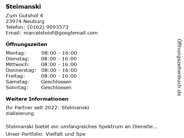 | Öffnungszeiten Steimanski in Neuburg anzeigen | |
