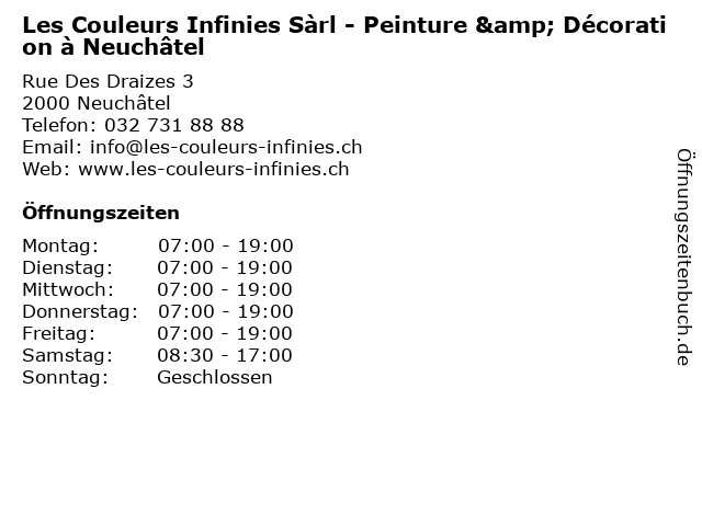 Branchen & Suchbegriffe zu Les Couleurs Infinies Sàrl - Peinture & Décoration à Neuchâtel:couleurs, décoration, infinies, isolierungsarbeiten, les, neuchâtel, peinture, stuckateurarbeiten, sàrl, umbauarbeiten, à |
