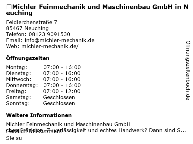 Branchen & Suchbegriffe zu Michler Feinmechanik und Maschinenbau GmbH in Neuching:anbieter für baumaschinen, feinmechanik, maschinenbau, neuching, michler |