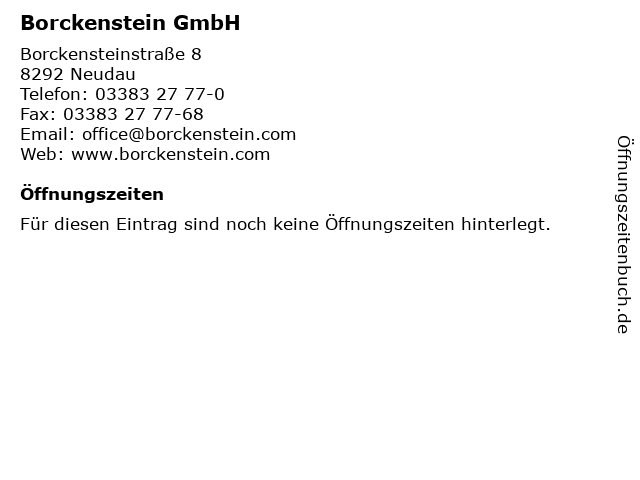 | Öffnungszeiten Borckenstein GmbH in Neudau anzeigen | |