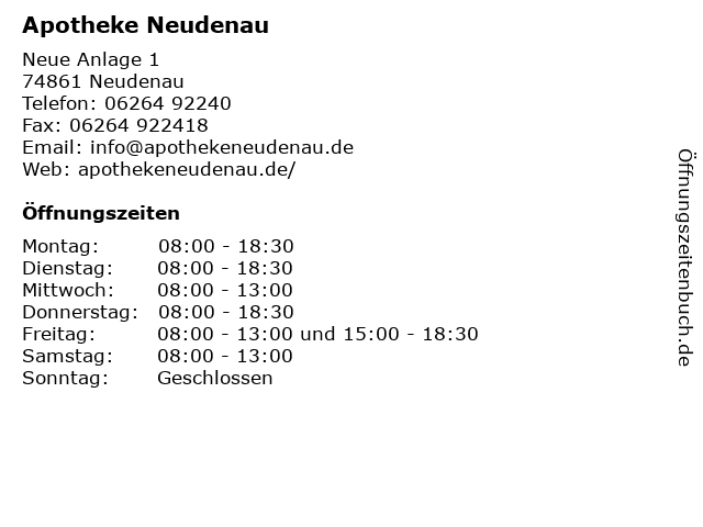| Öffnungszeiten Apotheke Neudenau in Neudenau anzeigen | |