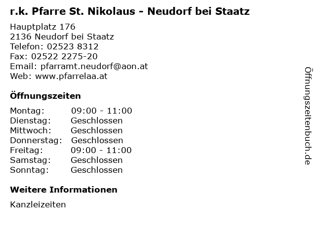 Branchen & Suchbegriffe zu r.k. Pfarre St. Nikolaus - Neudorf bei Staatz:bei, neudorf, nikolaus, pfarramt, pfarre, r.k., röm.-kath, staatz |
