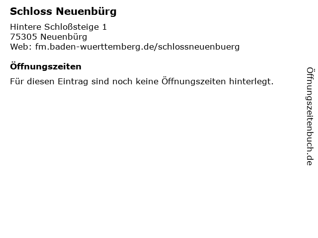 | Öffnungszeiten Schloss Neuenbürg in Neuenbürg anzeigen | |