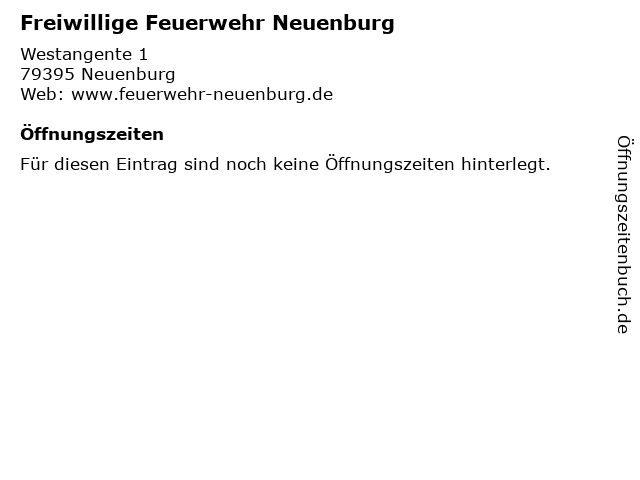 | Öffnungszeiten Freiwillige Feuerwehr Neuenburg in Neuenburg anzeigen | |