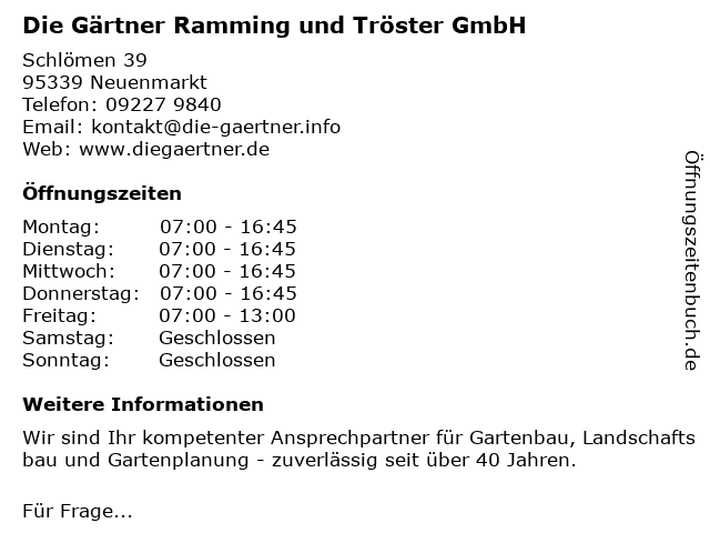 Branchen & Suchbegriffe zu Die Gärtner Ramming und Tröster GmbH:gärtner, ramming, tröster |