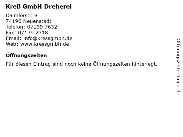 | Öffnungszeiten Kreß GmbH Dreherei in Neuenstadt anzeigen | |