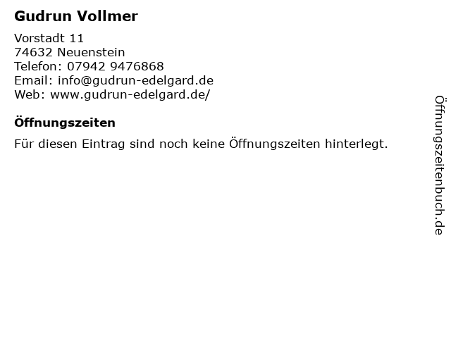 | Öffnungszeiten Gudrun Vollmer in Neuenstein anzeigen | |