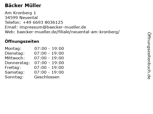 | Öffnungszeiten Bäcker Müller in Neuental anzeigen | |