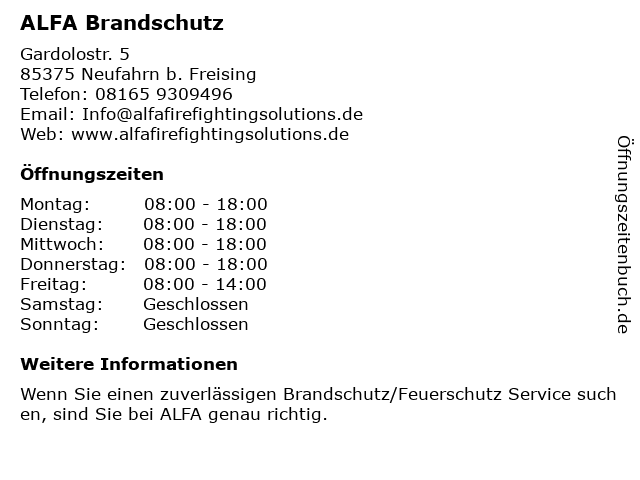 Branchen & Suchbegriffe zu ALFA Brandschutz:alfa, brandschutz |