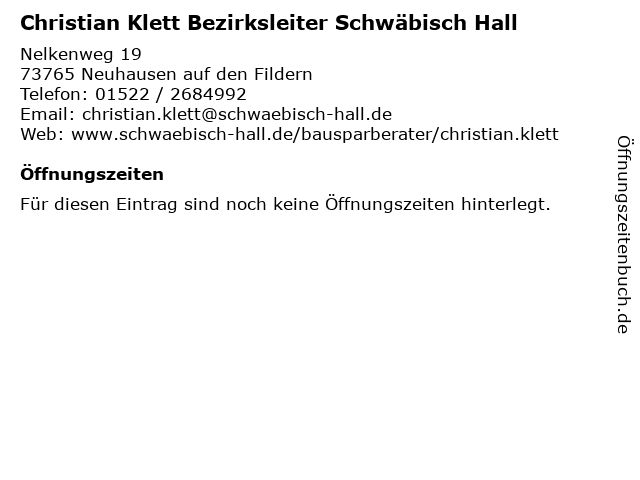 | Christian Klett Bezirksleiter Schwäbisch Hall anrufen | |