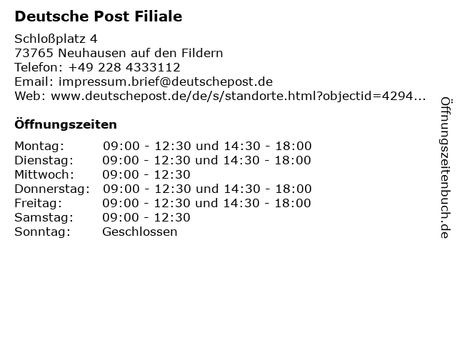 Deutsche Post Filiale in Neuhausen auf den Fildern | Telefonnummer, Öffnungszeiten und Adresse