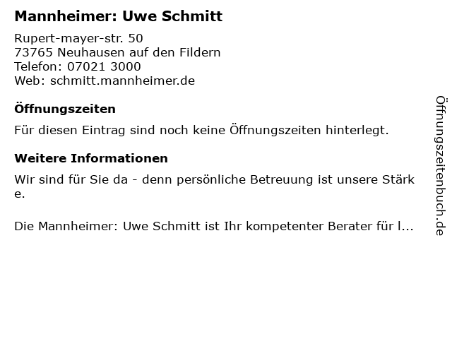 Branchen & Suchbegriffe zu Mannheimer: Uwe Schmitt:mannheimer, schmitt, uwe |