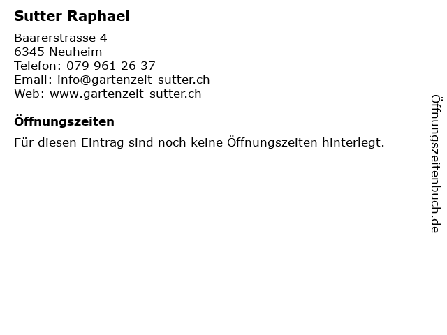 | Öffnungszeiten Sutter Raphael in Neuheim anzeigen | |
