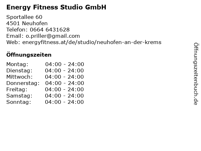 | Telefonnummer Energy Fitness Studio GmbH in Neuhofen (0664 6431628) anrufen | |