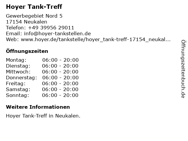 | Öffnungszeiten Hoyer Tank-Treff in Neukalen anzeigen | |