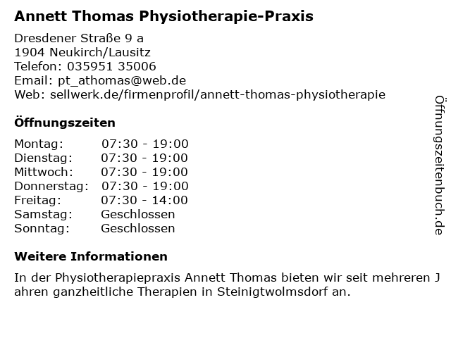 Branchen & Suchbegriffe zu Annett Thomas Physiotherapie-Praxis:annett, physiotherapie, praxis, thomas |