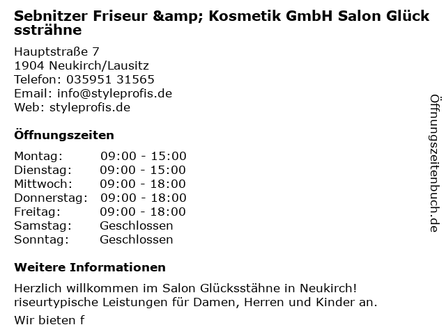 Branchen & Suchbegriffe zu Sebnitzer Friseur & Kosmetik GmbH Salon Glückssträhne:friseur, glückssträhne, kosmetik, salon, sebnitzer |