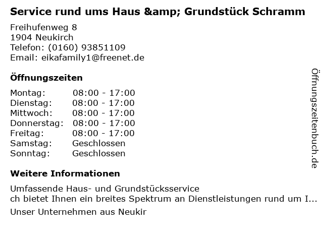 | Freitag | 08:00-17:00 |