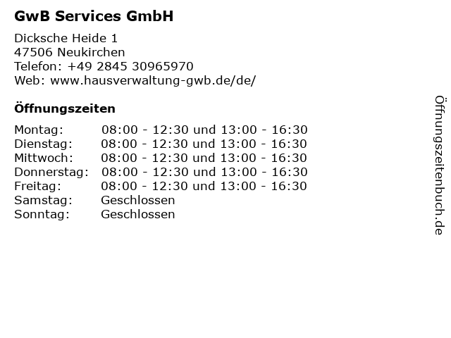 | Öffnungszeiten GwB Services GmbH in Neukirchen anzeigen | |