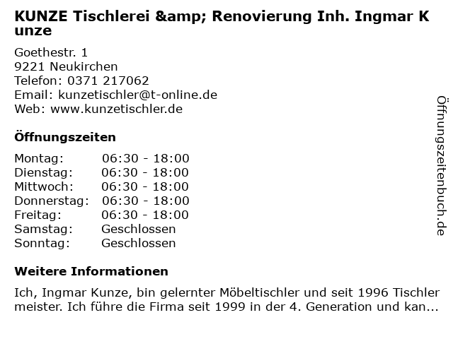 Branchen & Suchbegriffe zu KUNZE Tischlerei & Renovierung Inh. Ingmar Kunze:ingmar, kunze, renovierung, tischlerei |