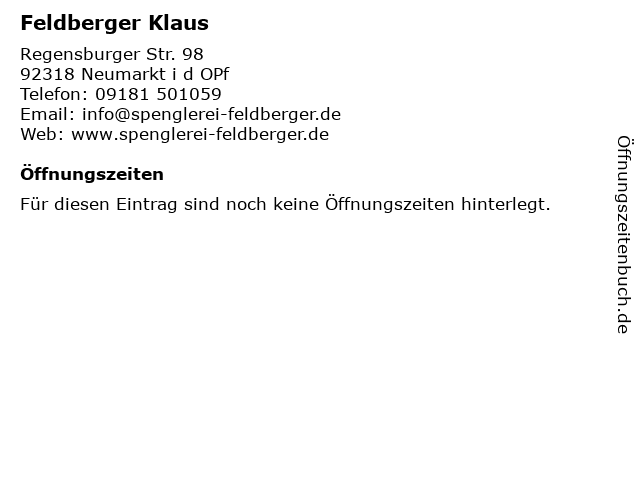 | Öffnungszeiten Feldberger Klaus in Neumarkt i d OPf anzeigen | |