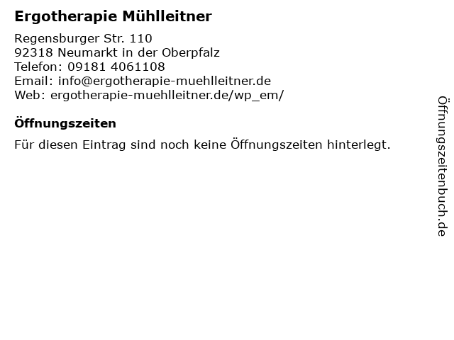1 Praxis für Ergotherapie Ina Telschik Ergotherapie (Entfernung: 0,96 km) Regensburger Str. 63, 92318 Neumarkt 6 Sana Vitalis - Niederlassung Altdorf (Praxis für Ergotherapie & Logopädie) (Entfernung: 16,21 km) Nürnberger Str. 20, 90518 Altdorf bei Nürnberg |