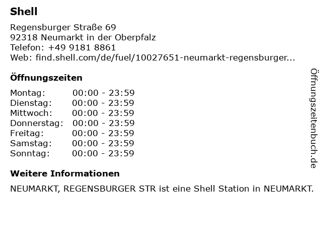 Shell in Neumarkt in der Oberpfalz | Telefonnummer, Öffnungszeiten und Adresse