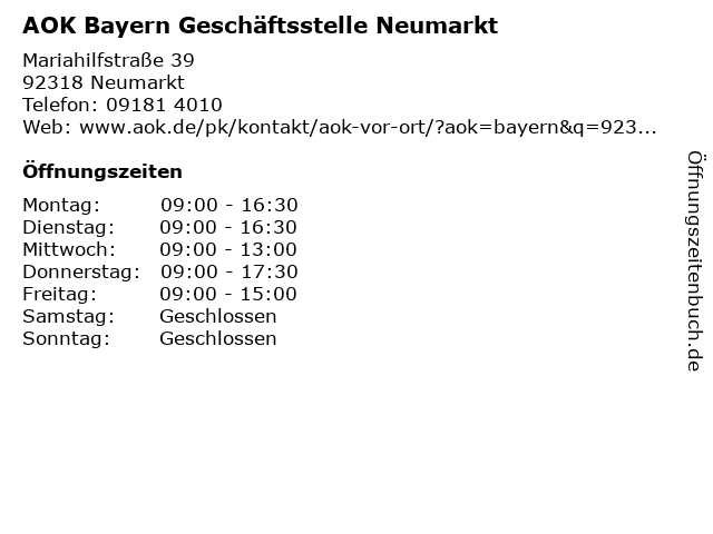 Branchen & Suchbegriffe zu AOK Bayern Geschäftsstelle Neumarkt:aok, bayern, geschäftsstelle |