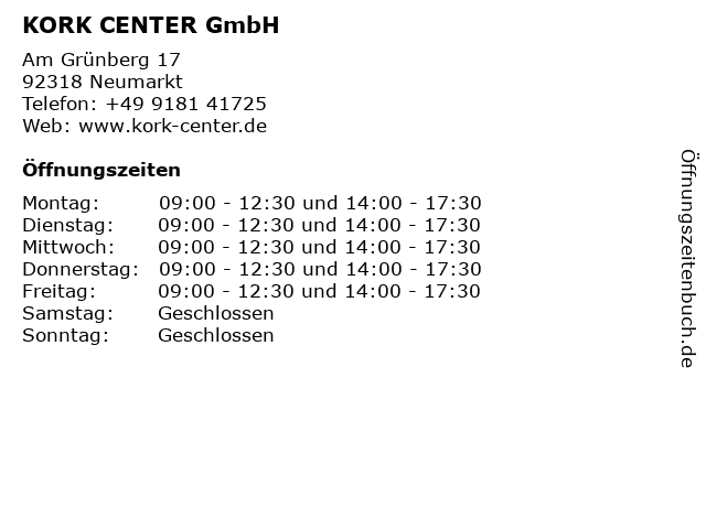 | Öffnungszeiten KORK CENTER GmbH in Neumarkt anzeigen | |