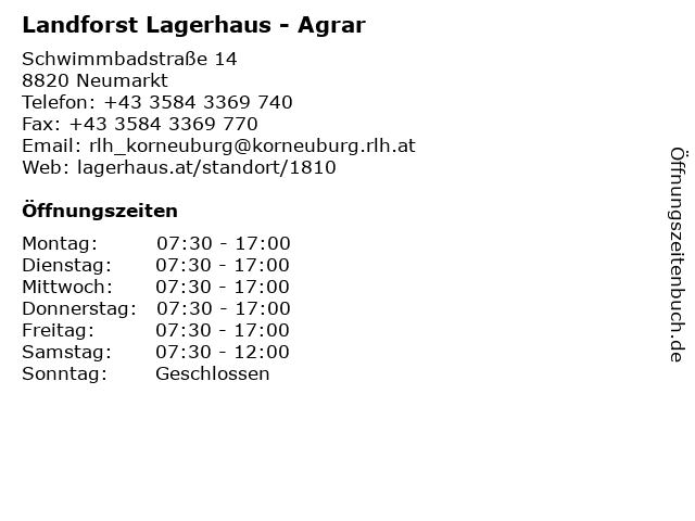 3 Unser Lagerhaus Warenhandelsgesellschaft m.b.H. - Agrar und Bau und Garten (Entfernung: 13,37 km) Lastenstr. 2, 9360 Friesach 5 Raiffeisen-Lagerhaus Landwirtschaftliche Betriebe (Entfernung: 18,69 km) Römersiedlung 61, 8850 Murau 6 |