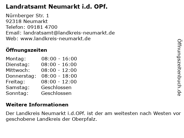 Branchen & Suchbegriffe zu Landratsamt Neumarkt i.d. OPf.:i.d., landratsamt, opf. |