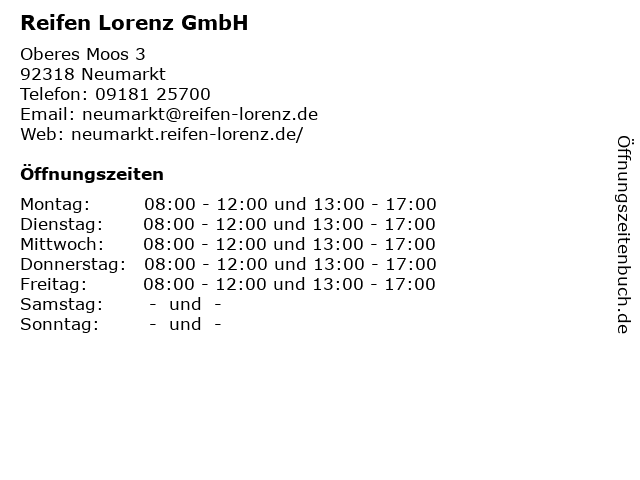 | Öffnungszeiten Reifen Lorenz GmbH in Neumarkt anzeigen | |